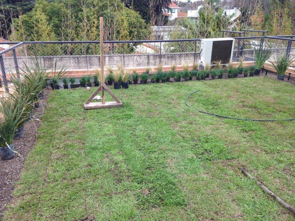 Instalación de sistema semi intensivo con césped natural y plantas naturales en terraza de de una vivienda en Vicente López, provincia de Buenos Aires.