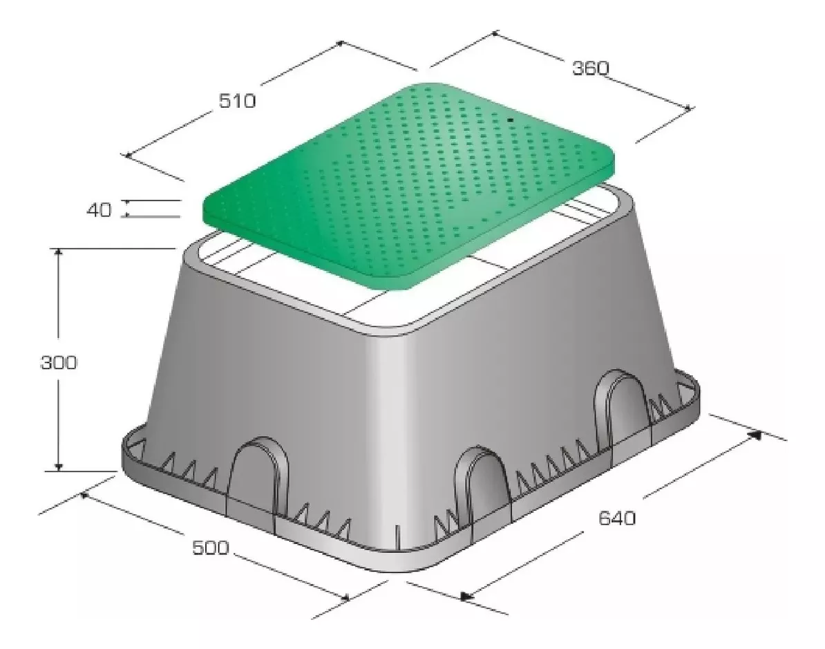 Medidas: 585 mm x 41,5 mm , altura: 65mm. Material: HDPE High Density. Almacenamiento de agua: 9 lt por m2 aprox. ...